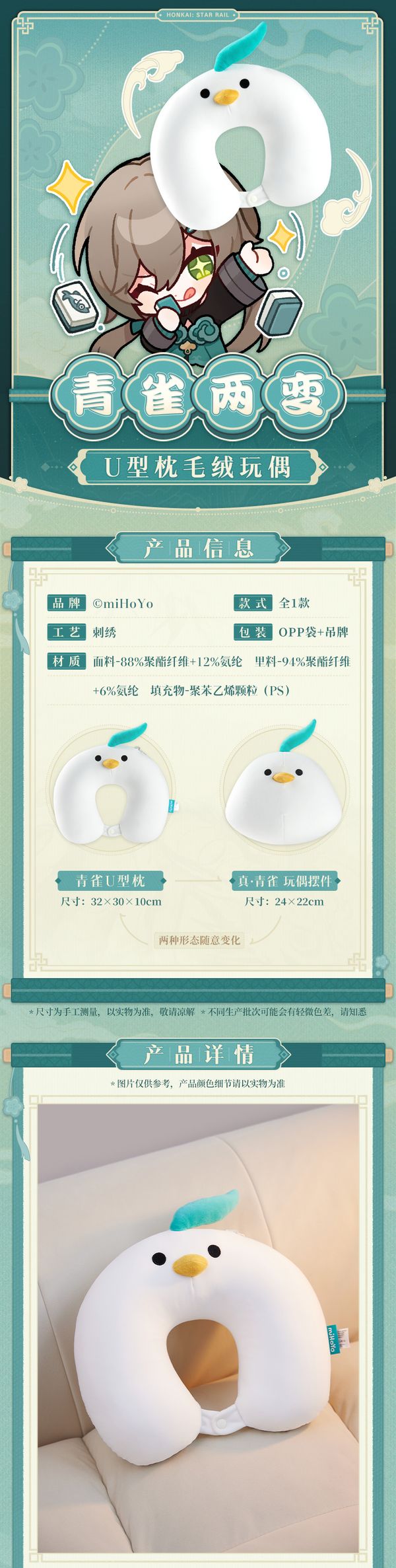 青雀两变U型枕毛绒玩偶